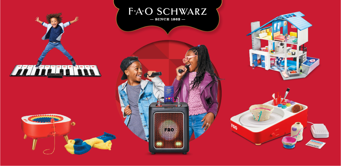 今年的FAO Schwarz 系列包括适合学龄前至14 岁以上儿童的新系列,从化妆套件和设计套装到装扮游戏和经典产品,例如FAO Schwarz Ultimate 玩具屋、FAO Schwarz Pottery Wheel All-In-One Studio 和FAO Schwarz Giant 69 ” 在钢琴垫上跳舞。