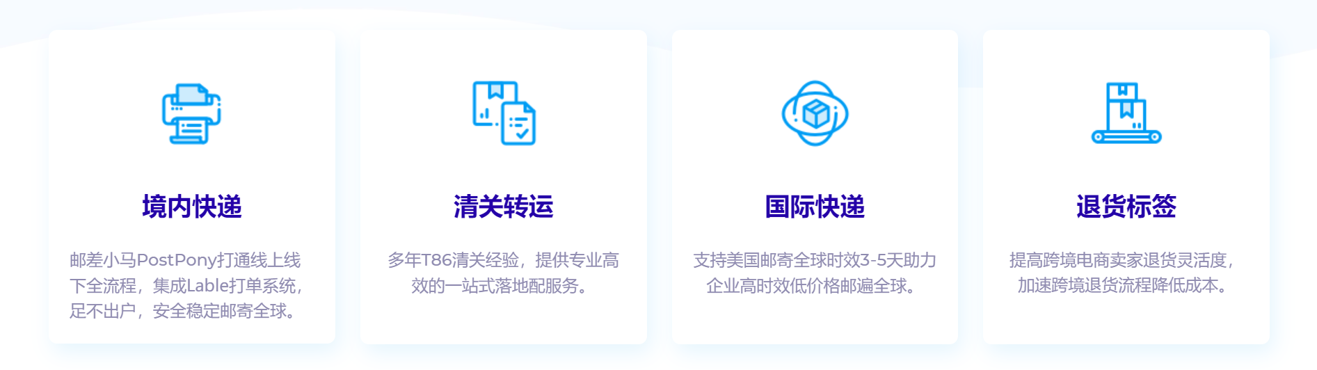 邮差小马PostPony聚合了USPS、UPS、FedEx、DHL、LTL等多个供应商的配送渠道,为电商卖家、海外仓企业、物流货代公司提供美国境内及国际尾程快递打单及清关转运服务。他们提供境内快递服务,通过集成Label打单系统实现足不出户邮寄全球,同时在清关转运方面拥有多年的T86清关经验,提供专业高效的一站式落地配送服务。邮差小马还支持国际快递服务,助力企业以3-5天的时效高效低价格邮寄全球,并提供退货标签服务,帮助跨境电商卖家提高退货灵活度、加速退货流程、降低成本。