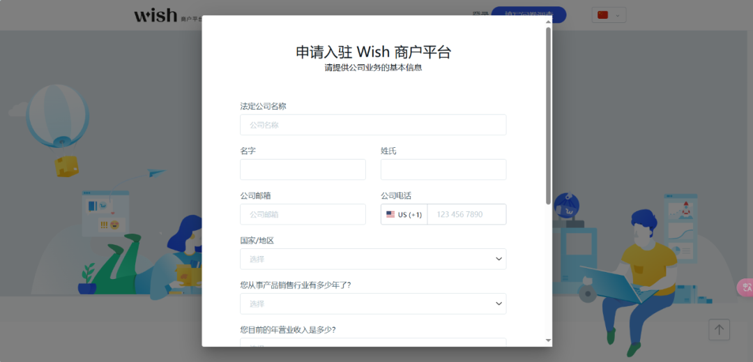访问Wish官方网站或下载Wish移动应用程序填写调查问卷,等待平台审核联络。