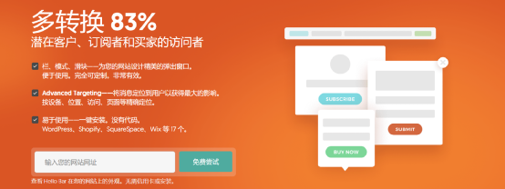 导读:推荐一款比较好用的shopify插件工具  如果你需要在自己站点的顶部、中间或其他任意位置,放置一个收集客户信息的小广告,可以考虑一下HELLO BAR。