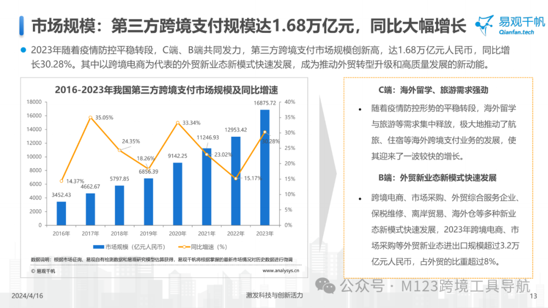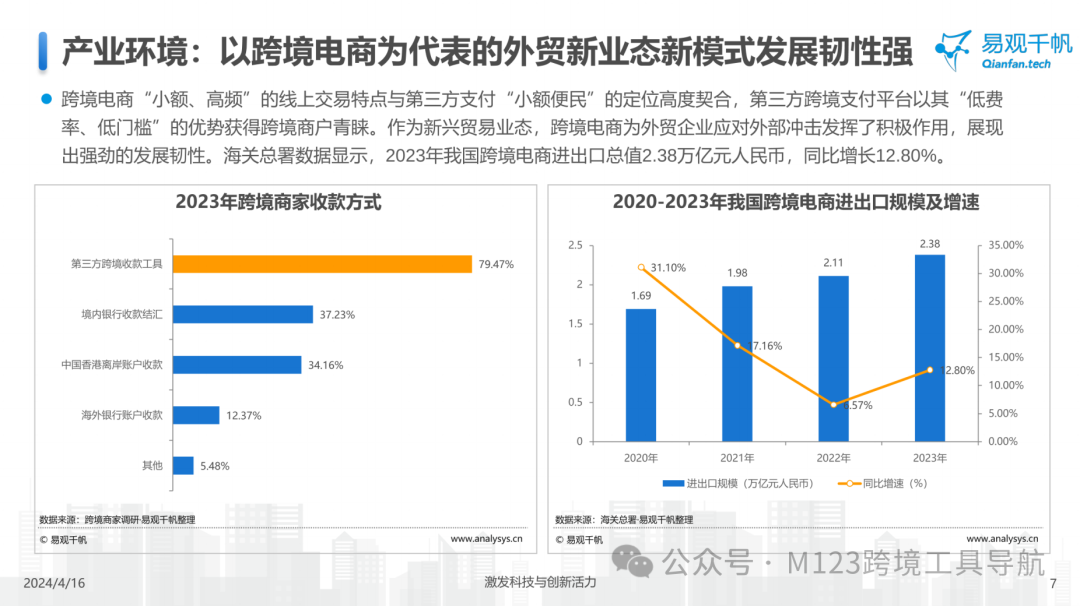 如果你想获取完整版行业报告,可以关注【M123跨境工具导航】公众号,回复【中国跨境支付行业年度专题分析2024】即可免费下载原报告,查看完整版。