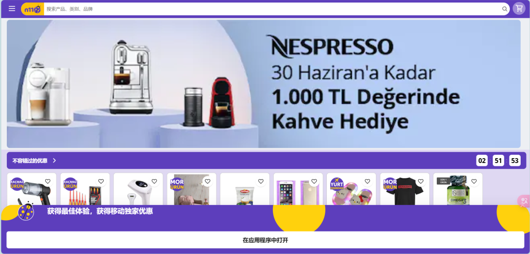 N11成立于2012年,是土耳其领先的开放市场概念购物平台,是土耳其第二大在线电商平台,每月在线访问量7700万。在Getir的管理下,它汇集了数百万种产品和超过33万的注册业务合作伙伴,拥有2500万客户。平台主要经营电子、纺织品、家具以及土耳其传统工艺品等众多品类,2015年时N11平台的注册商家数就超过3万,平台SKU达到惊人的2500万。
