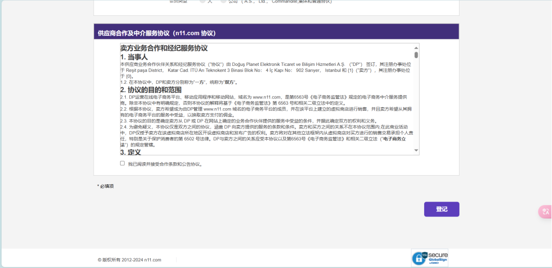 4.完成上述填写后,勾选合作协议。点击“成为会员”按钮,完成注册。