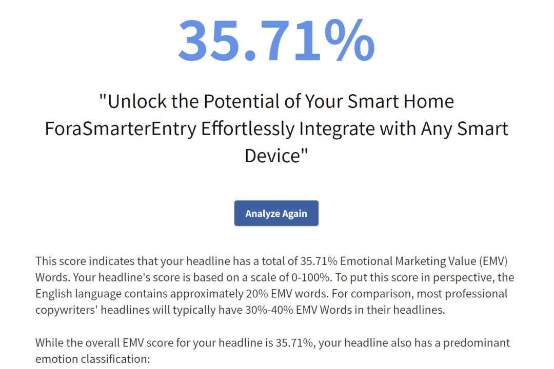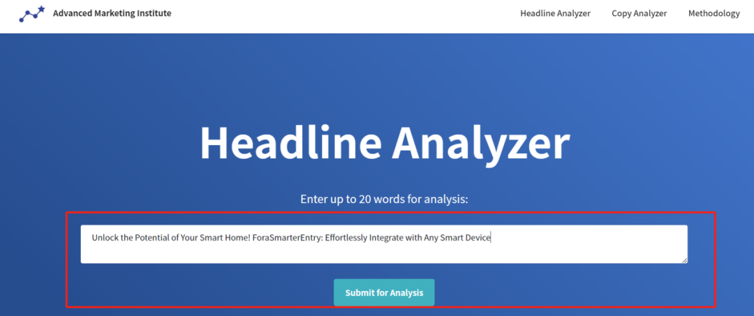也可以使用https://aminstitute.com/headline/这个工具来测试你的广告文案是否足够吸引人,并获得更详细的评分和优化建议。