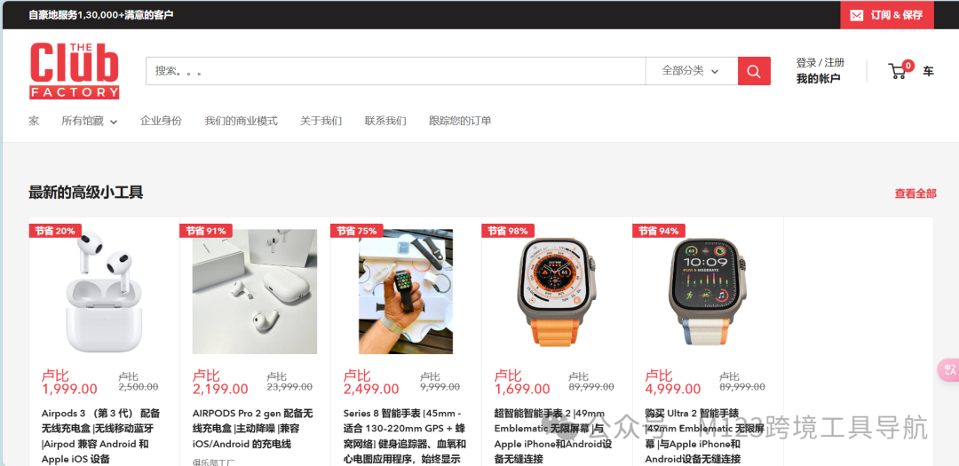 Club Factory 是来自中国杭州的跨境电商公司,2016年成立的Club Factory目前已经覆盖29个国家,利用大数据和人工智能技术,提升运营效率,降低供应链成本。目前,平台已在29个国家上线,拥有一亿用户,SKU数量超千万。