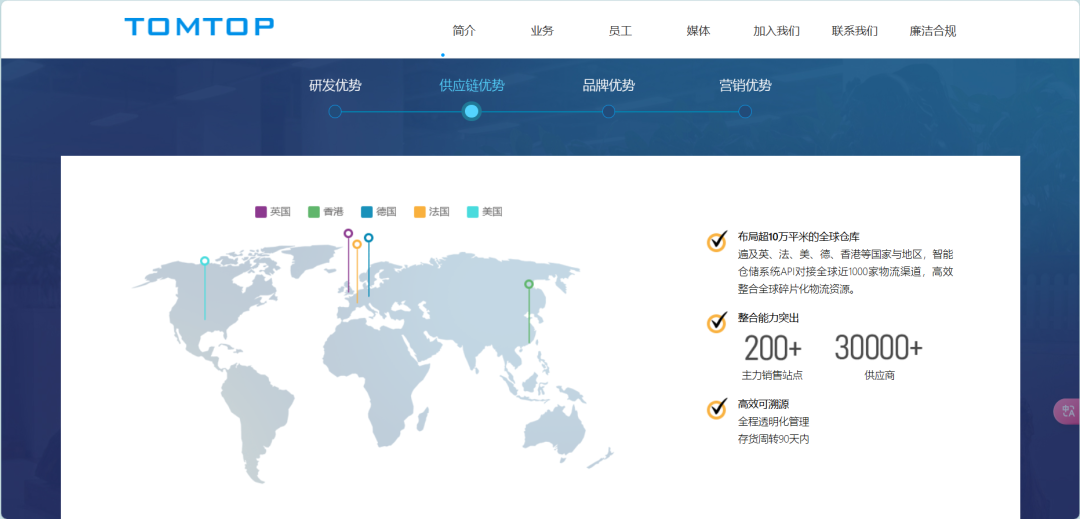 供应链优势:Tomtop在全球范围内建立了完善的供应链体系,确保产品质量和交期。