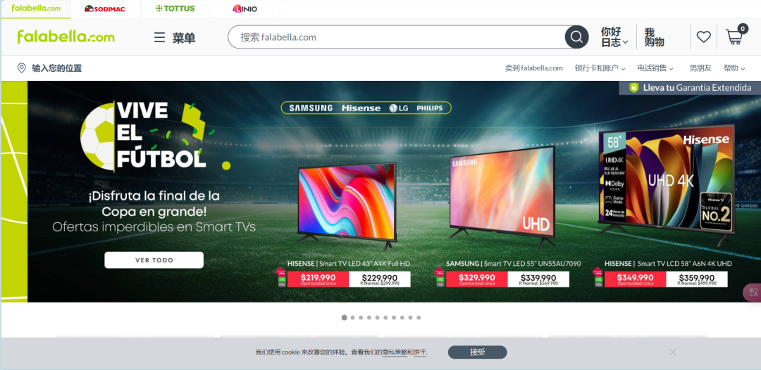 Falabella平台是拉丁美洲最大的电商平台之一,目前Falabella拥有567家线下店铺,分别位于智利、秘鲁、阿根廷、巴西、哥伦比亚、墨西哥和乌拉圭7个国家。与线上门店共同构成了强大而成熟的销售网络。与竞争对手相比,Falabella注重产品供应,具有先进的生活方式和理念,兼具品牌特色和市场竞争力。拥有集中客服团队解决时差、语言障碍。平台提供免费商户经理支持、免费卖家培训等。同时稳定可靠的专线物流负责清关和最后一公里派送,为卖家解决找物流难、清关难问题。目前Falabella平台入驻卖家数量已经突破2万名。