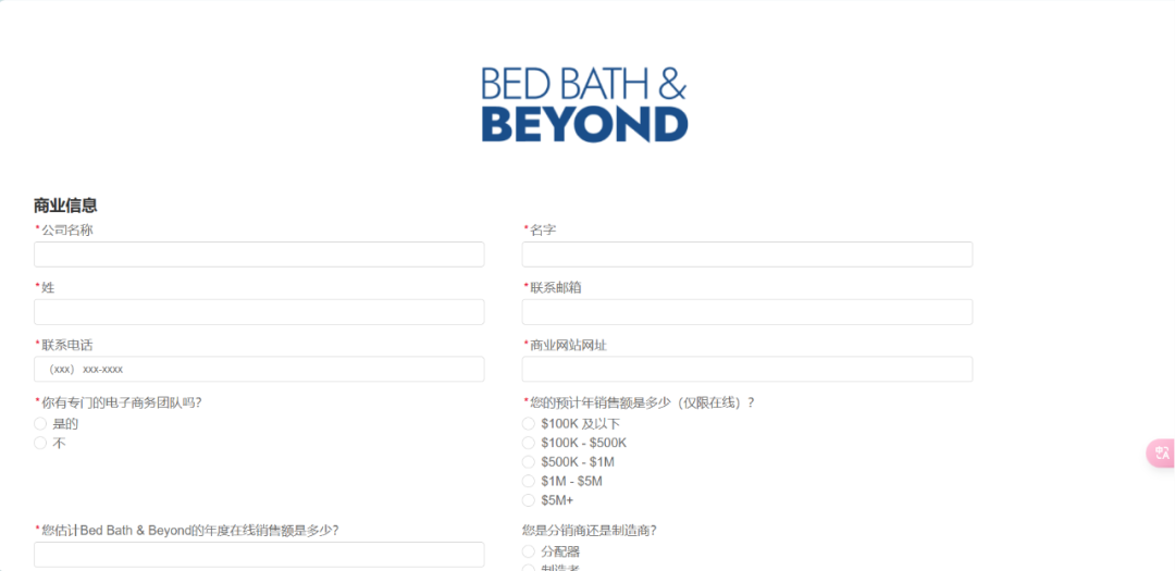 填写申请表格,包括公司信息、联系人信息、产品类别等。