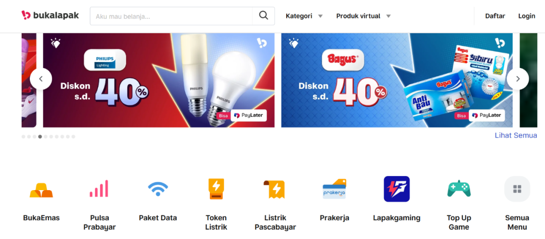 Bukalapak是印尼本土的综合性电商平台,关注低线城市和低收入群体,为草根阶层提供便捷的电商服务。Bukalapak在印尼地区的月活用户达6000万,月访问量达1.2亿次。
