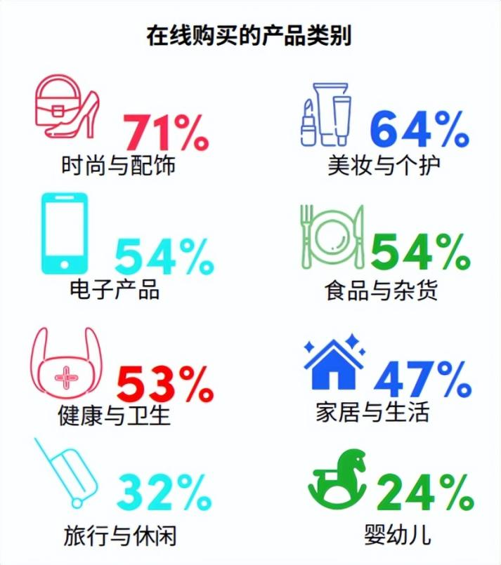 从细分市场看,印尼电商市场以时尚配饰、美妆个护、电子产品、食品等为主,同时也不乏健康卫生、家居生活等垂直领域的深耕者,这些品类在印尼市场均有着广泛的受众基础和巨大的市场潜力。