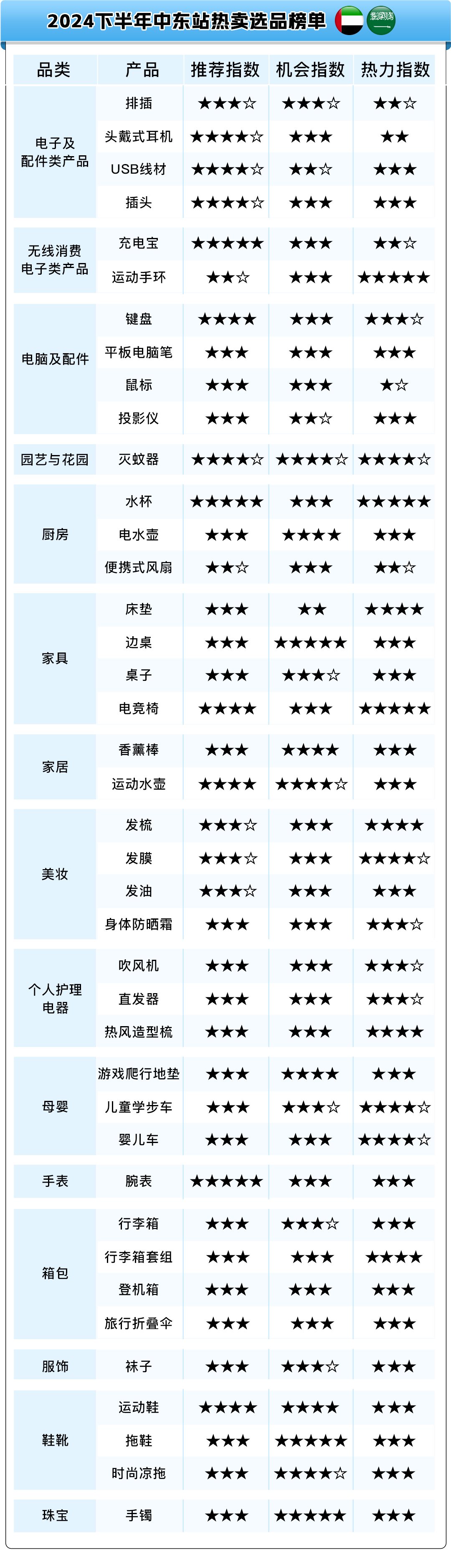 2024下半年中东地区热卖选品