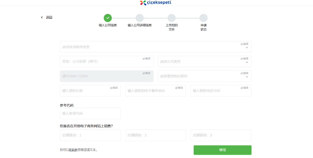 2. 填写申请表,Ciceksepeti工作人员会对您所提交的信息进行审核。