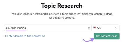 首先输入支柱页面的主题,然后点击Get content ideas。