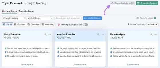 您可以查看每个子主题的此信息,或者通过点击Export topics to XLSX按钮来导出所有子主题的数据。