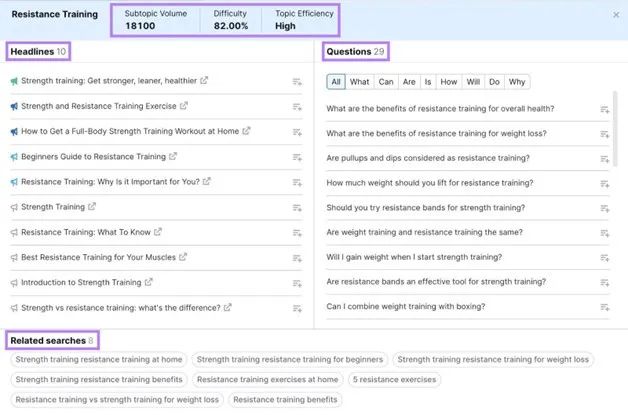 我们可以使用Semrush中的Topic Research工具来了解要在支柱页面上包含哪些信息。