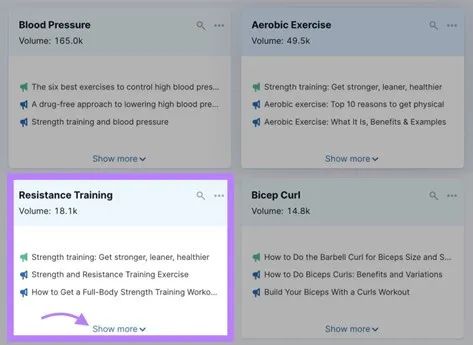 您可以点击每张卡片底部的Show more以了解有关特定子主题的更多信息。
