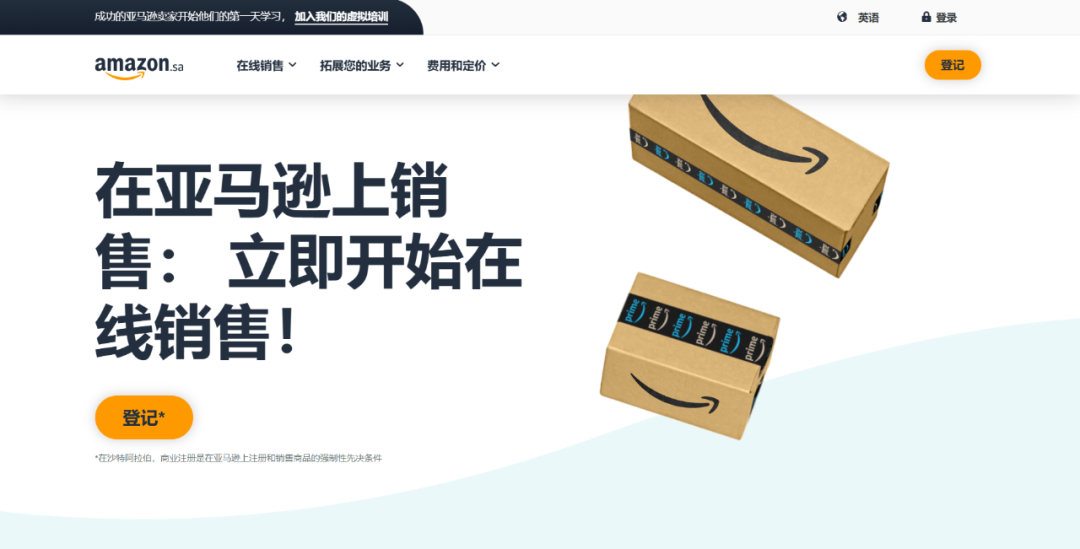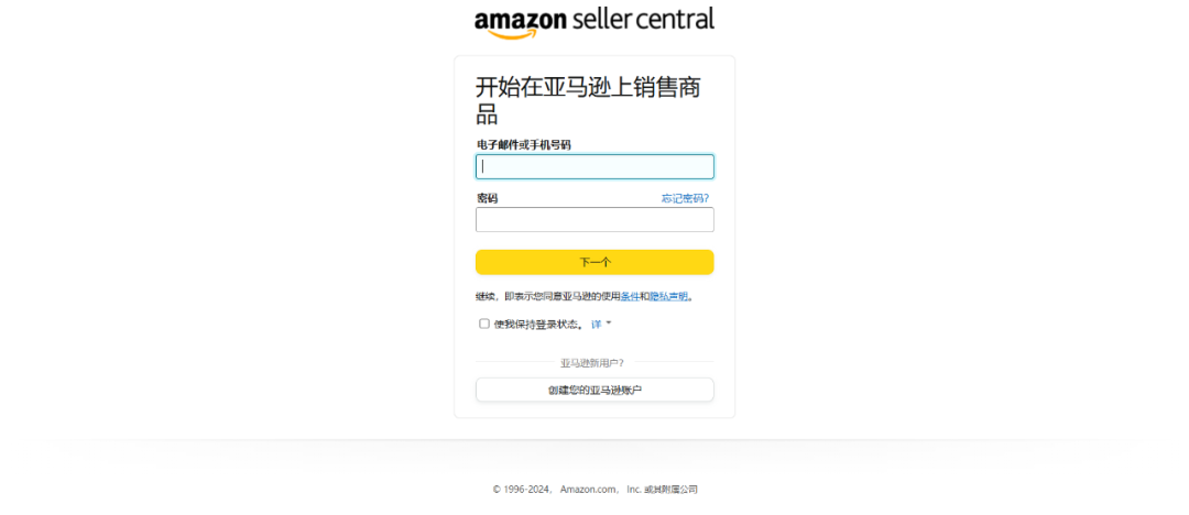 1. 登录官网首页,点击“在亚马逊上销售”创建账户;