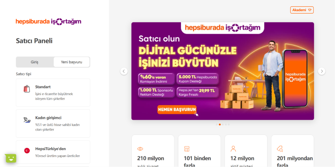 1、在Hepsiburada官网上选择入驻类型