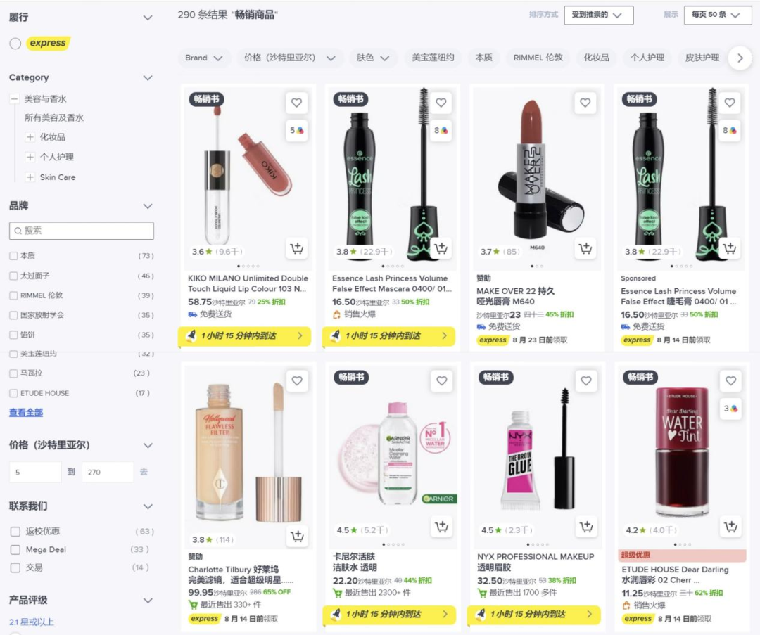 沙特美容美妆市场非常活跃,随着消费者对高品质美容产品的需求日益增长,这个类目的产品也在不断扩大受众范围。其中,针对沙特当地高温、干燥气候的护肤品及防晒产品特别受欢迎;彩妆中口红、眼影、睫毛膏、粉底液是常年霸榜的热销产品。个人护理产品中,成分天然的染发剂、发胶、牙膏是转化率较高的产品;美容仪器中,家用脱毛仪是新兴的热门产品。