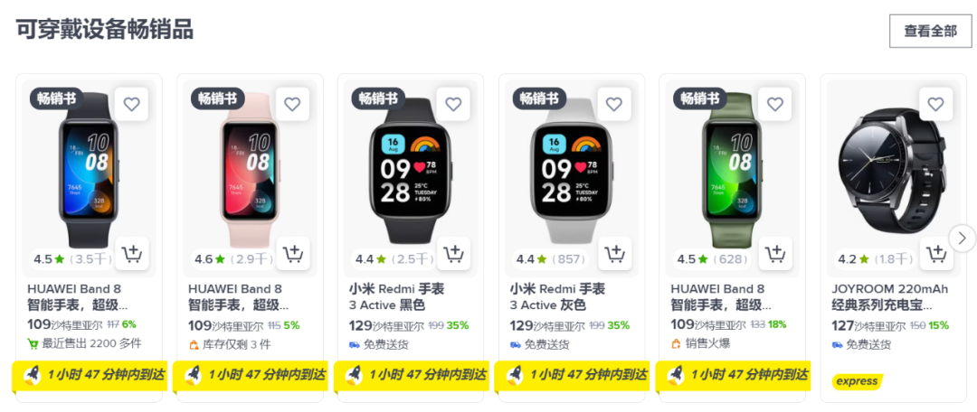 富有的沙特人追求精致美好的生活方式,在家居家电用品上的消耗十分庞大,尤其是可以实现轻松生活的智能家居用品,成为近年来沙特地区的新宠,各大电商平台的销量都十分火爆。其中便携式吸尘器、运动型分体搅拌器、干熨斗与咖啡机都是月销上千的热门产品。