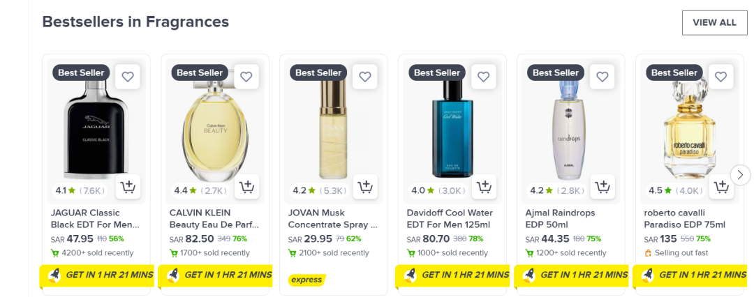 时装、鞋类、箱包和配饰都是沙特消费者网购的主要类目。女性时尚中,瑜伽及运动服饰增速较快;香水、休闲鞋需求量稳定。男士时尚类目里,手表、太阳镜、运动袜转化率最高