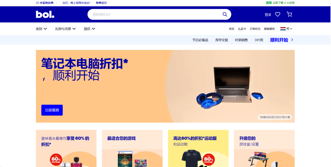 Bol.com,1999年在荷兰正式推出,原本以售卖图书、玩具和电子产品等产品为主,后来随着业务的扩张逐渐发展,产品种类繁多包括园艺、母婴儿用品、图书、珠宝、电子产品、DIY 产品等种类。Bol.com拥有超过1100万活跃用户、41,000 名经销商和超2300万种不同的商品。Bol是荷兰最大的购物网站也是比利时的第三大在线零售商,Bol商平台用户90%来自于荷兰和比利时。虽然这两个国家的人口加起来只有2900万,但Bol.com每月有1100万活跃客户的7600万访问量。2021年荷兰的活跃用户数量增加到九百多万万,比利时也增加了三百多万用户。