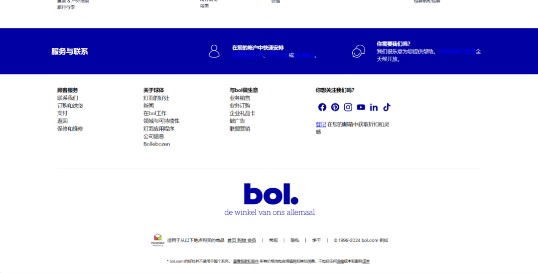 通过Bol进行物流管理,使用Logistics,bol Retailer API就可以在Bol配送中心查看您的库存,了解Bol为您处理的订单,将所有物流外包,节省了时间同时可为客户提供更多交付选项;通过Parcel Stamps支付较少的运费,通过Ship via bol无忧运送货物,通过bol查看物流,优化库存;通过Bol发货,可以快速运送您的包裹,并提供有吸引力的价格选项,降低运输成本;Bol通过改进退货流程和洞察力来减少退货,同时修理退回产品,并通过修理或翻新它们,再将其重新投放市场。