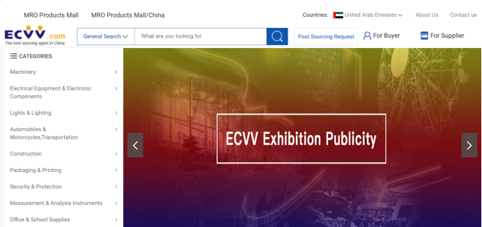 ECVV(又名又名伊西威威)是一家成立于2006年的互联网化跨境电商B2B平台,基于中国供应链优势,服务于一带一路的阿拉伯国家,致力于为全球买家提供B端客户工品的一站式采购服务。ECVV面向22个阿拉伯国家,拥有200多万活跃买家和290多万活跃供应商,在家居装饰、办公设备、五金工具、医疗防护、机械配件等领域具备影响力。