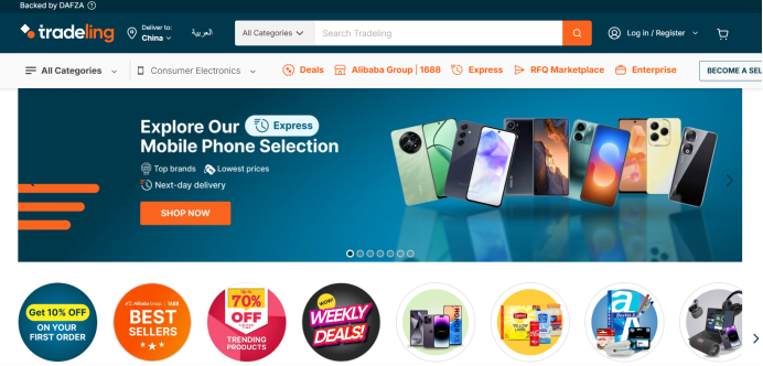 Tradeling总部位于迪拜,是中东地区最大的B2B电商平台之一,拥有来自25个国家的超过1000万注册用户和供应商,被称作“中东版的1688”。Tradeling覆盖14个垂直领域的四十万个SKU,包括服装、鞋子、化妆品、家居用品、数码产品等。