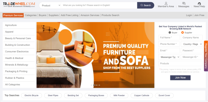 Tradewheel是全球知名的综合性B2B电商平台,致力于为全球贸易商、出口商和制造商提供综合型贸易服务。Tradewheel覆盖了150多个国家或地区的全品类产品出口,凭借其综合性、全球性、H2H服务模式等优势,为入驻的中国卖家提供更专业的服务,有助于卖家拓展国际市场、提升品牌知名度、降低营销成本、获得高质量询盘并享受专业服务。
