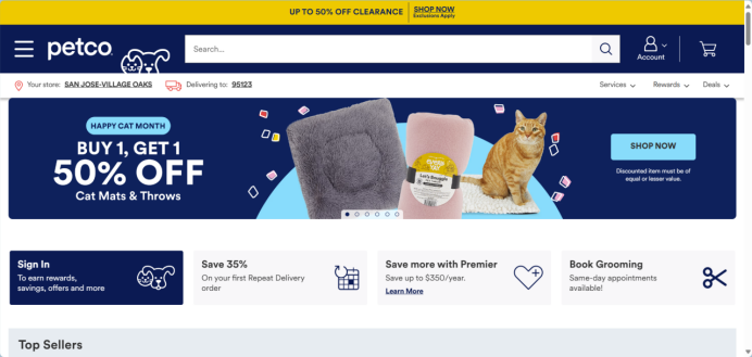 Petco的线上平台让宠物主人们能够随时随地在指尖上探索并选购宠物所需的各类商品。Petco构建了一个多样化的商品世界,从宠物食品、宠物用品,到宠物美容护理的必备品,应有尽有,全面覆盖了宠物日常生活的每一个细节。与此同时,Petco在美国、墨西哥及波多黎各等地拥有众多实体店,这些实体店不仅是宠物用品的聚集地,更是宠物主人与宠物共享快乐时光的绝佳场所。此外,Petco实体店还提供了一系列增值服务,如专业的宠物美容、全面的兽医咨询与诊疗服务,以及宠物收养信息等,全方位呵护宠物健康,促进人宠和谐共处。