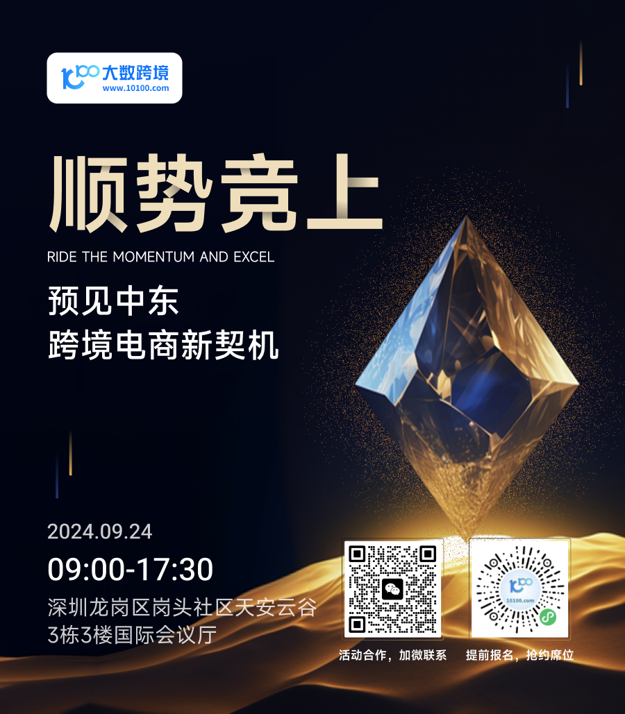 中东这一新兴的潜力市场正在引领电商经济新浪潮。对于跨境卖家来说,及时捕捉中东电商市场动向,是抢占出海先机、提升市场占有率、实现曲线超越的关键。9月24日,大数跨境将在深圳举办【顺势竞上▪遇见中东 跨境电商新契机】活动,特邀亚马逊全球开店、Noon、Hepsiglobal、LoveAd等主流平台及跨境行业大咖,一同打破信息壁垒,把握中东市场脉络,强化卖家间的互动学习,共同探讨跨境电商新契机、品牌出海新战略!