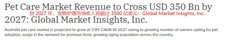 “邪恶银渐层”、“天使萨摩耶”、“拆家哈士奇”.....随着全球人口结构改变、现代生活节奏加快,“毛孩子”成为人们情感寄托的重要载体,越来越多的宠物成为家庭中不可或缺的一员。作为古希腊掌管陪伴的神,宠物主很舍得为宠物花钱,2021年全球宠物市场规模达到了2320亿美元,预计到2027年将达到3500亿美元,年复合增长率达到了6.3%。