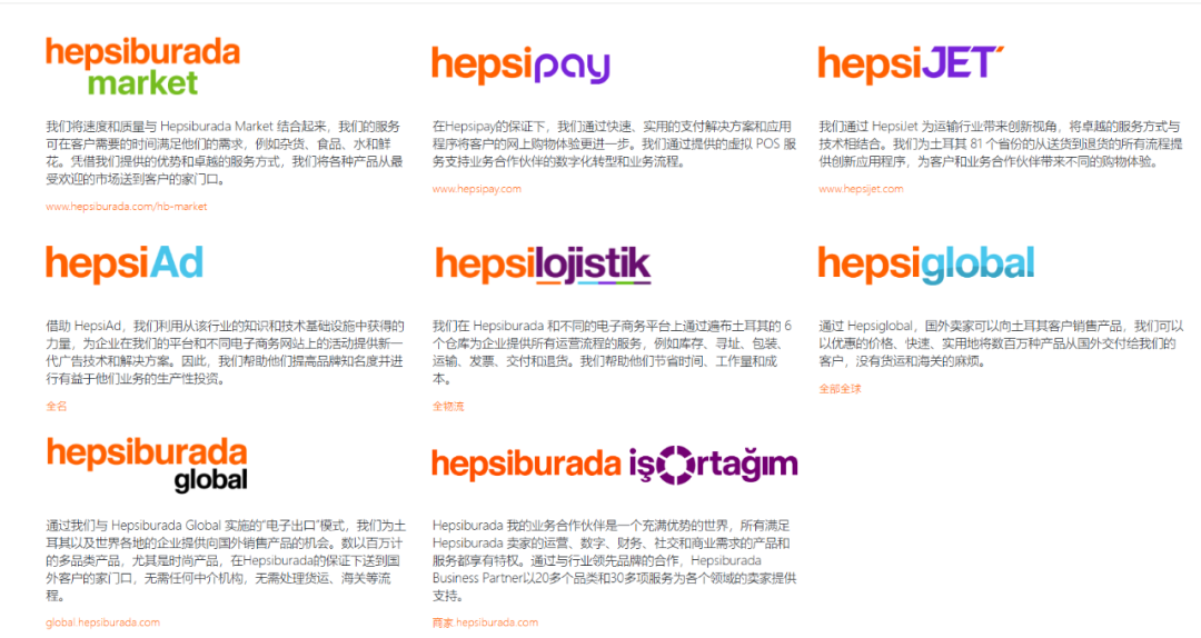 Hepsiburada通过完整的电商产业链,创建了自己的生态系统,包括HepsiJet(物流)、HepsiExpress(即时配送)、HepsiPay(支付)、HepsiAd(广告)、HepsiFly(机票预定)、HepsiGlobal(跨境商品)等品牌,为无论是卖家还是用户,都提供了极大的便利。
