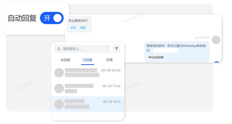 用socialecho,帮你提升评论管理效率:除了能做到多平台评论收集和AI标签分类,还支持AI自动回复。