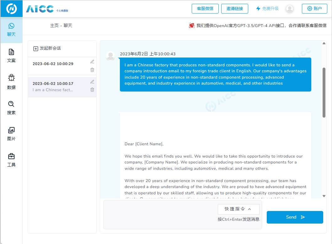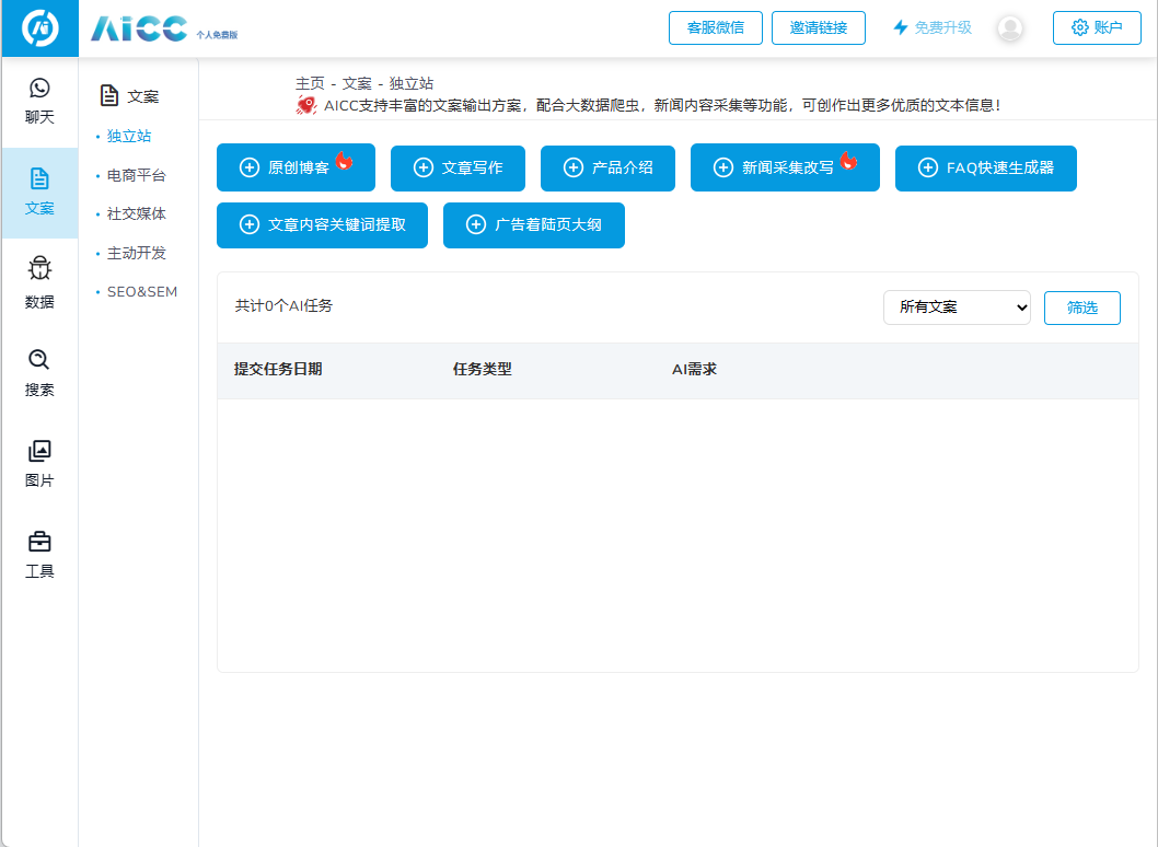 在跨境电商中,产品文案的质量和效率是非常关键的。而“AICC”(点击查看详情页)通过AI技术,可以快速生成高质量的产品文案。用户只需要输入产品信息,就可以得到一篇完整的文案,大大提高了文案创作的效率,它的基础功能主要包括以下几个方面: