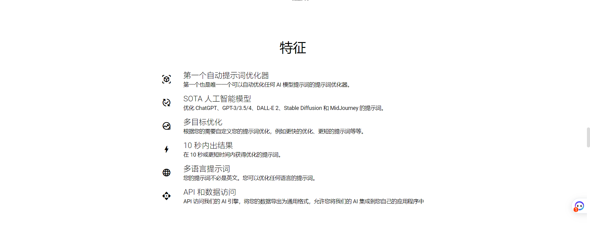 提示词是AIGC工具中的一个非常重要的组成部分,它可以帮助用户更好地理解工具的功能和使用方法。但是,有些提示词可能会让用户感到困惑或者不太容易理解。提示词优化Promptperfect就是为了解决这个问题而生的。它可以优化任何AIGC工具的提示词,使其更加易于理解和使用。