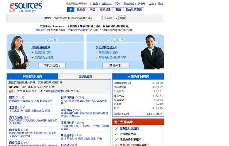 EsourcesUK是英国最大的B2B供应商目录和批发贸易门户网站,为卖家提供了丰富的供应商资源和市场机会。