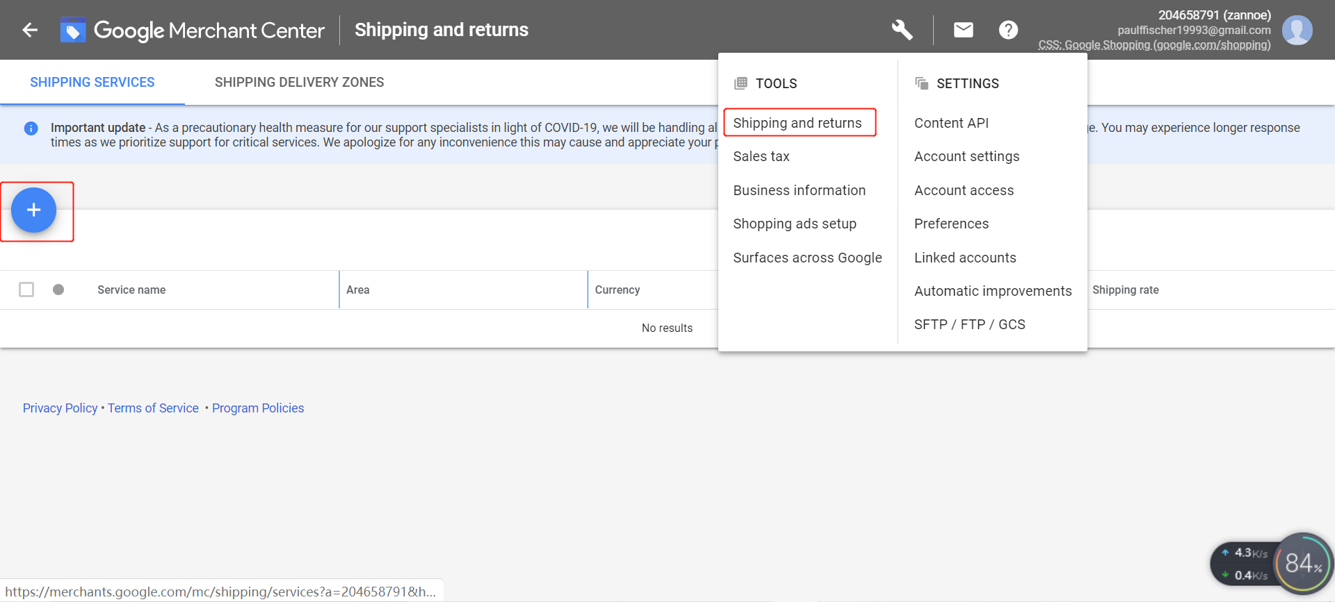 第2步,运费设置。依次点击工具(扳手)-送货和退货-按钮➕号以创建配送服务。