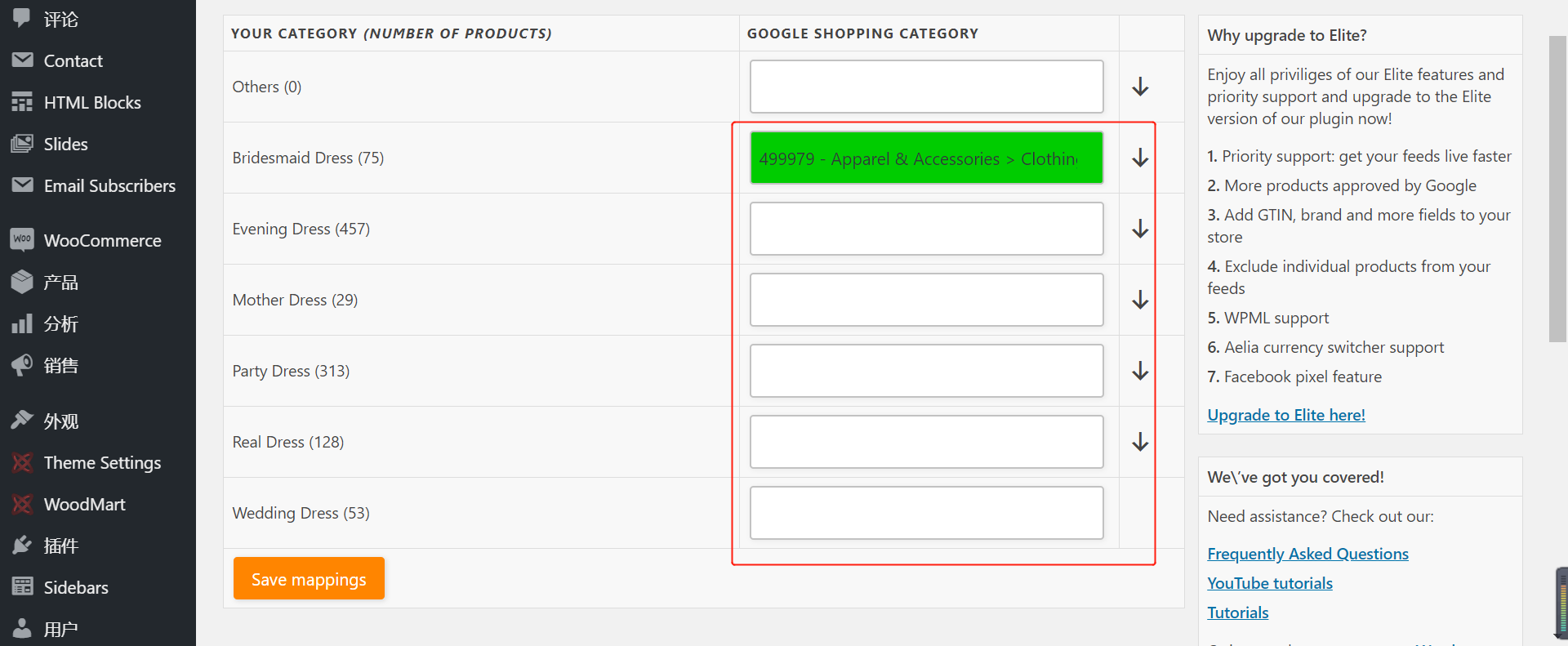 选择需要上传的产品,输入对应的google类别,进行保存;