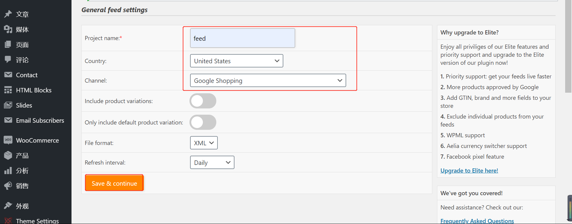第1步,在 wordpress的后台安装 product feed pro for woocommerce插件