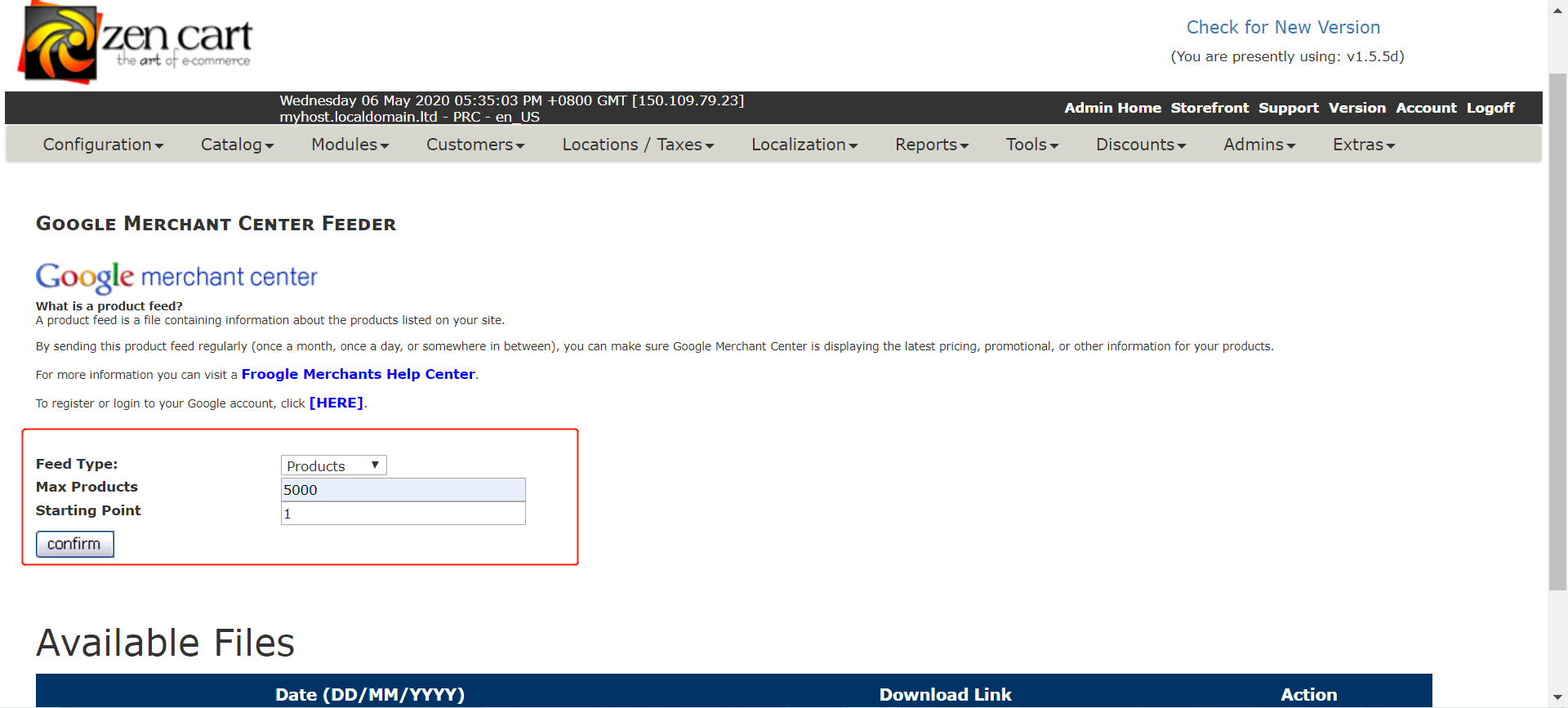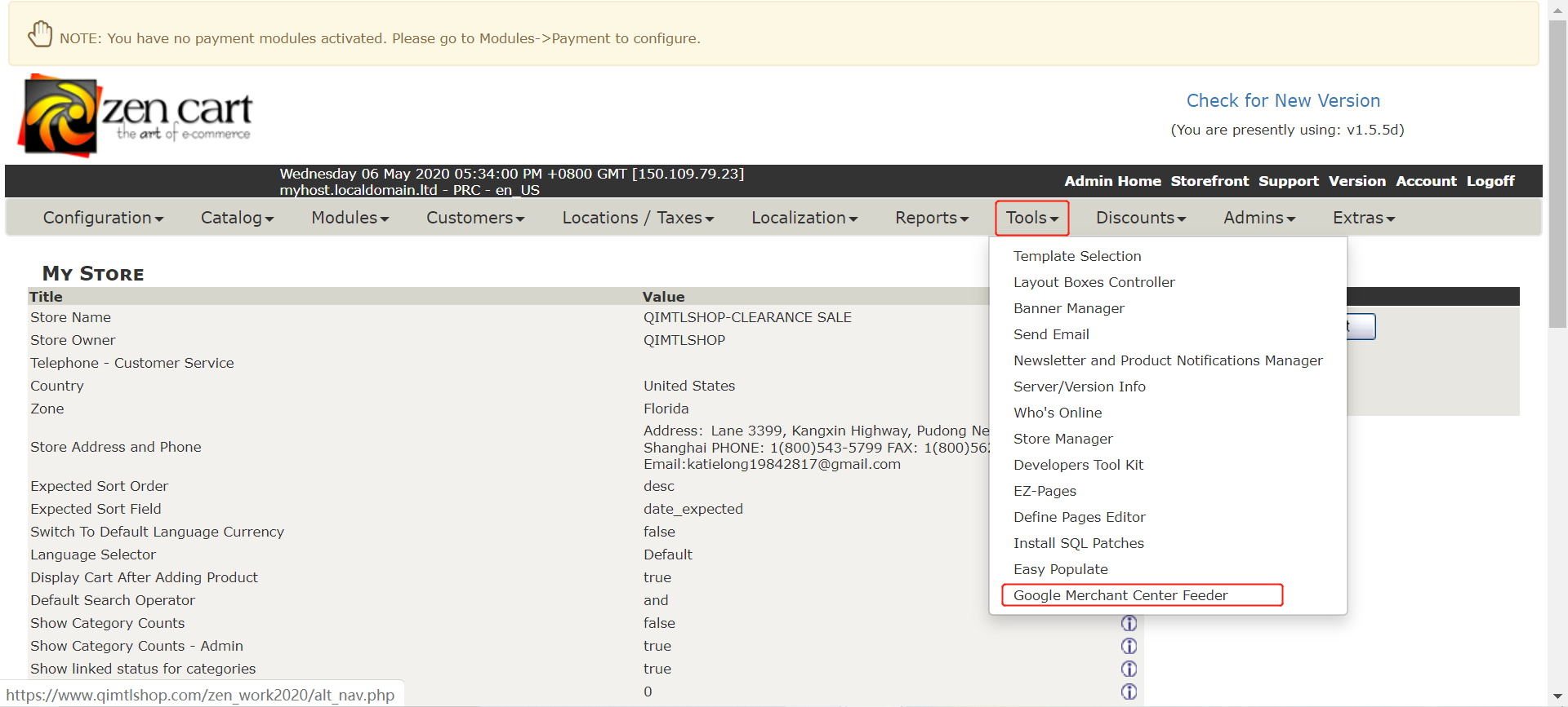 第1步,进入zencart后台,依次点击Tools-Google Merchant Center Feeder