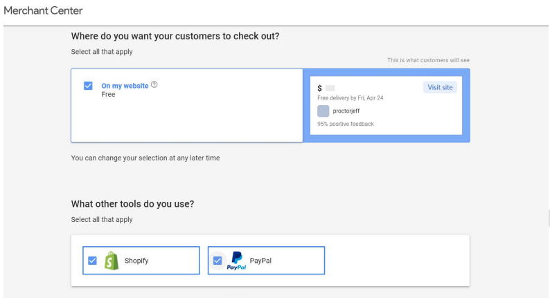 第 2 步,“你希望客户在哪里结账?”,勾选“on my website”。