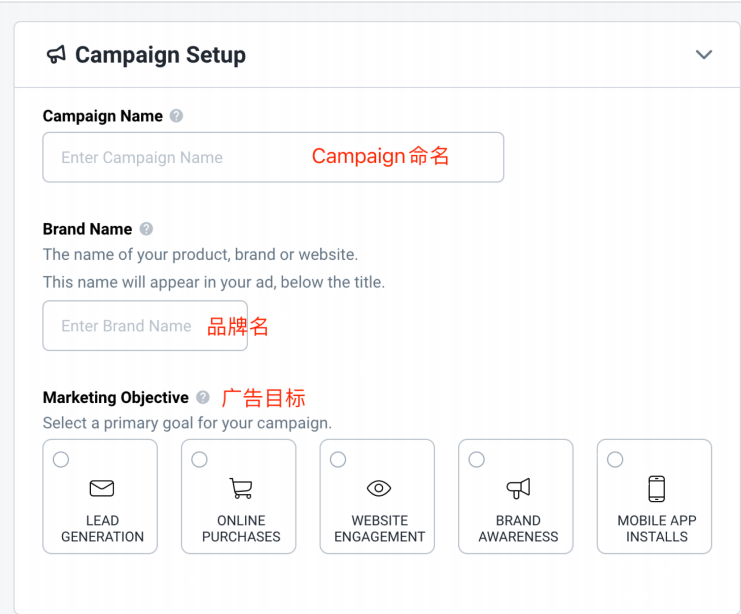 为Campaign命名并选择广告转化目标。命名方式建议为日期+广告目标+投放地区+产品。