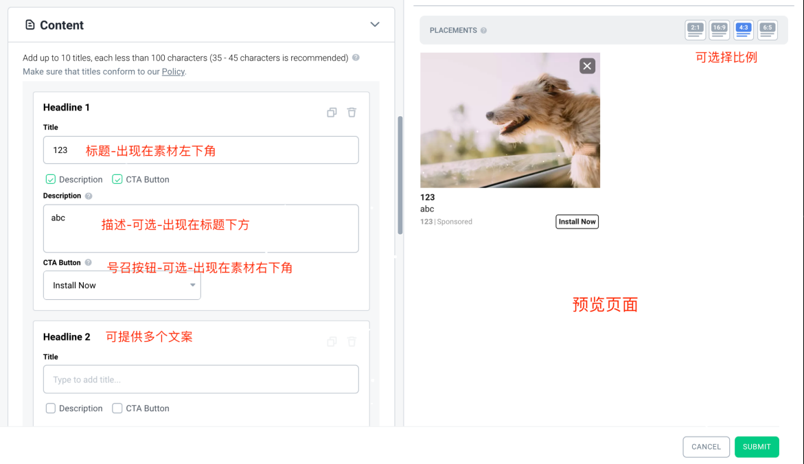 Taboola上主要存在Content Discovery(原生图/文)、Branding/In-Feed Native(品牌推广/信息流)和Taboola News三种方式,支持图片/动态图/视频等素材、搭配标题、描述、品牌名以及CTA按钮。广告主可以通过一条广告展示更多内容,让目标用户得到更多有效信息,最大程度提升品牌及转化效果。