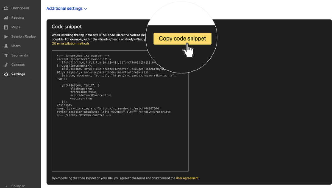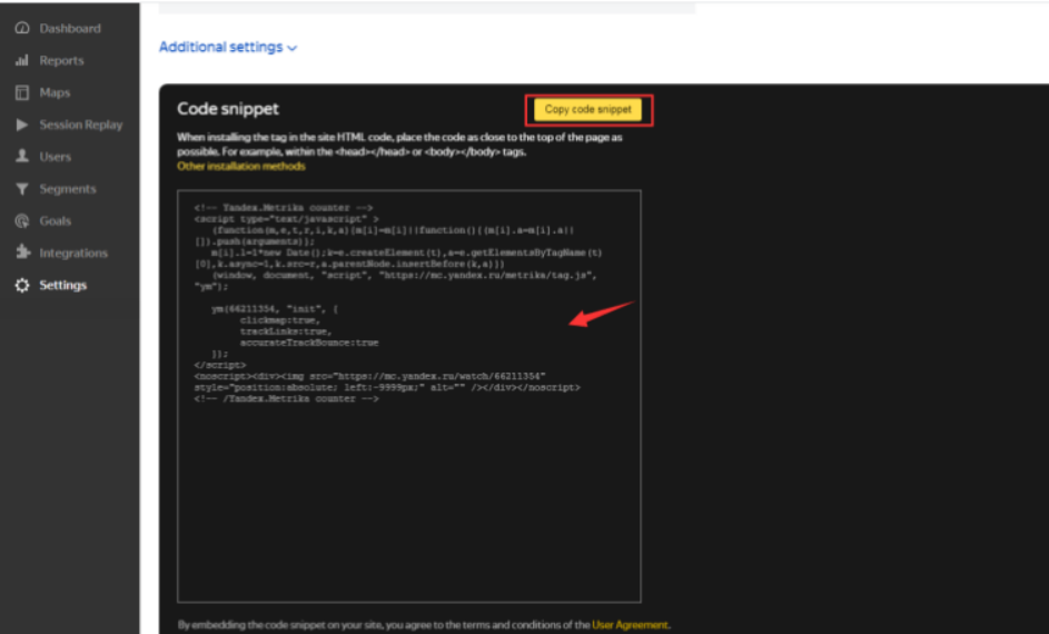 如果你改变Yandex.Metrica代码设置,那么你将需要更新放置在您网站上的代码。