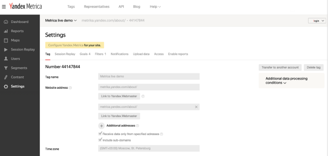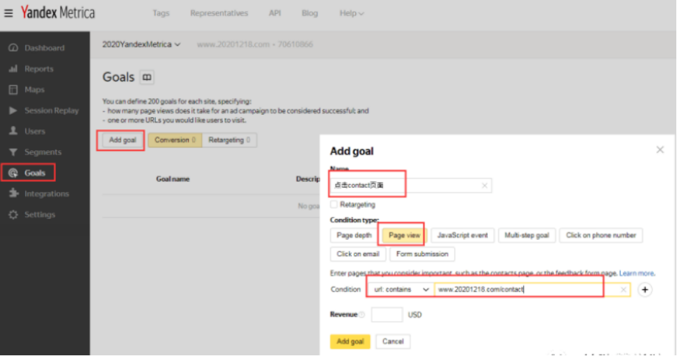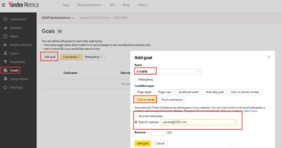 (1)在Yandex广告开户后,在账户左侧点击Metrica或者直接输入Metrica网址。