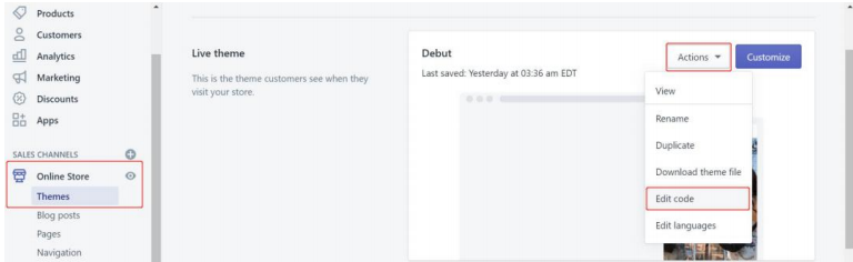 - 在shopify中,转到在线商店-自定义-主题操作-编辑代码,在模板下,找到index.liquid。