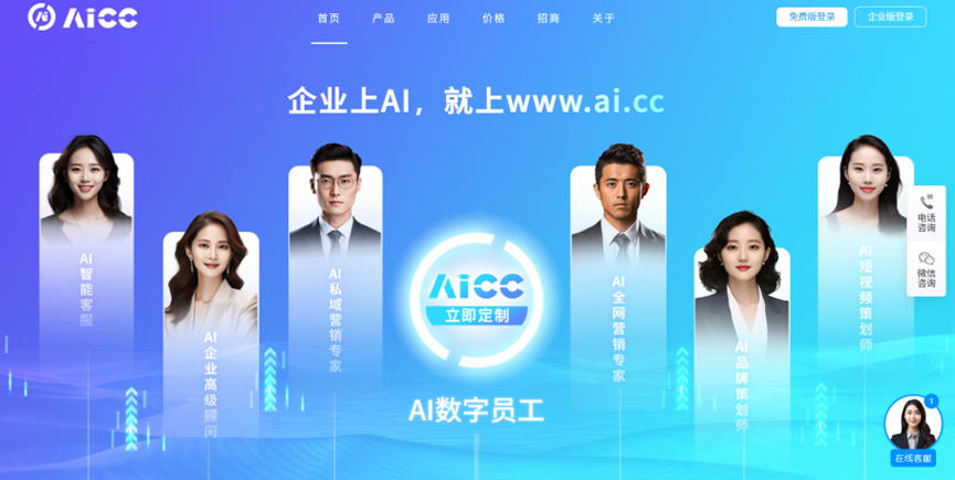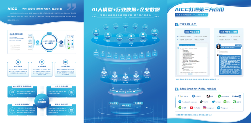 AICC(AI for Chinese Company),为中国企业提供全方位的AI解决方案,它所提供的AI解决方案涵盖了企业的多个方面,包括企业营销、客户服务、人力资源、企业管理等,帮助你在一些工作场景中轻松实现“摆烂“: