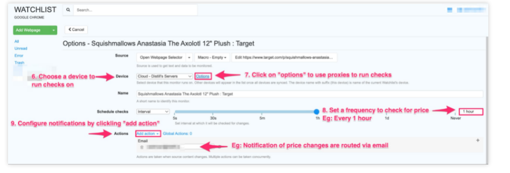 8.“计划检查”——决定蒸馏监控页面的频率。如果您不确定多长时间,那么选择Interval并将其设置为1小时。Distill将每小时刷新产品网页,查看是否有任何更新,并相应地通知您。